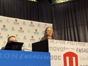 Elle a insisté sur l’importance de défendre les droits des travailleuses et travailleurs, y compris le droit de grève, face à des pressions économiques et politiques croissantes. La présidente nationale a également souligné l’urgence pour le Canada de développer des stratégies industrielles robustes dans des secteurs clés comme l’aérospatiale et les télécommunications.